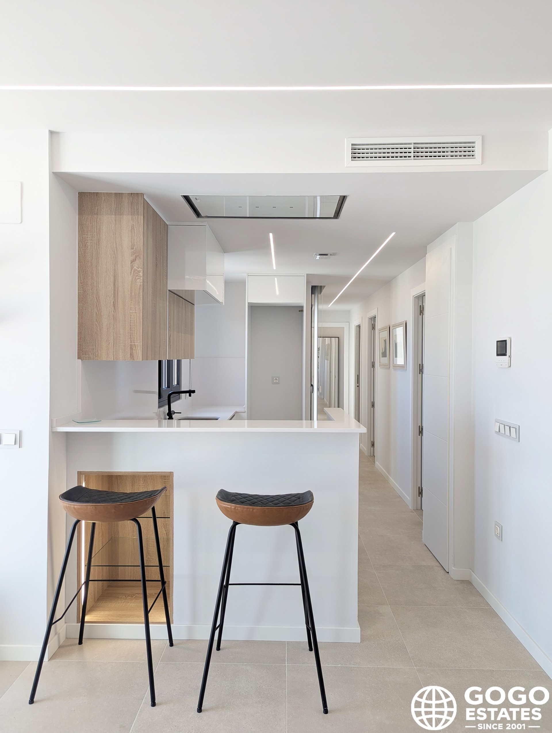 The exteriors are crafted for tranquility, with garden areas and a communal pool perfect for relaxation. Indoors, the penthouse is equipped with modern features such as ceramic tile floors, electric shutters, and pre-installation for air conditioning.