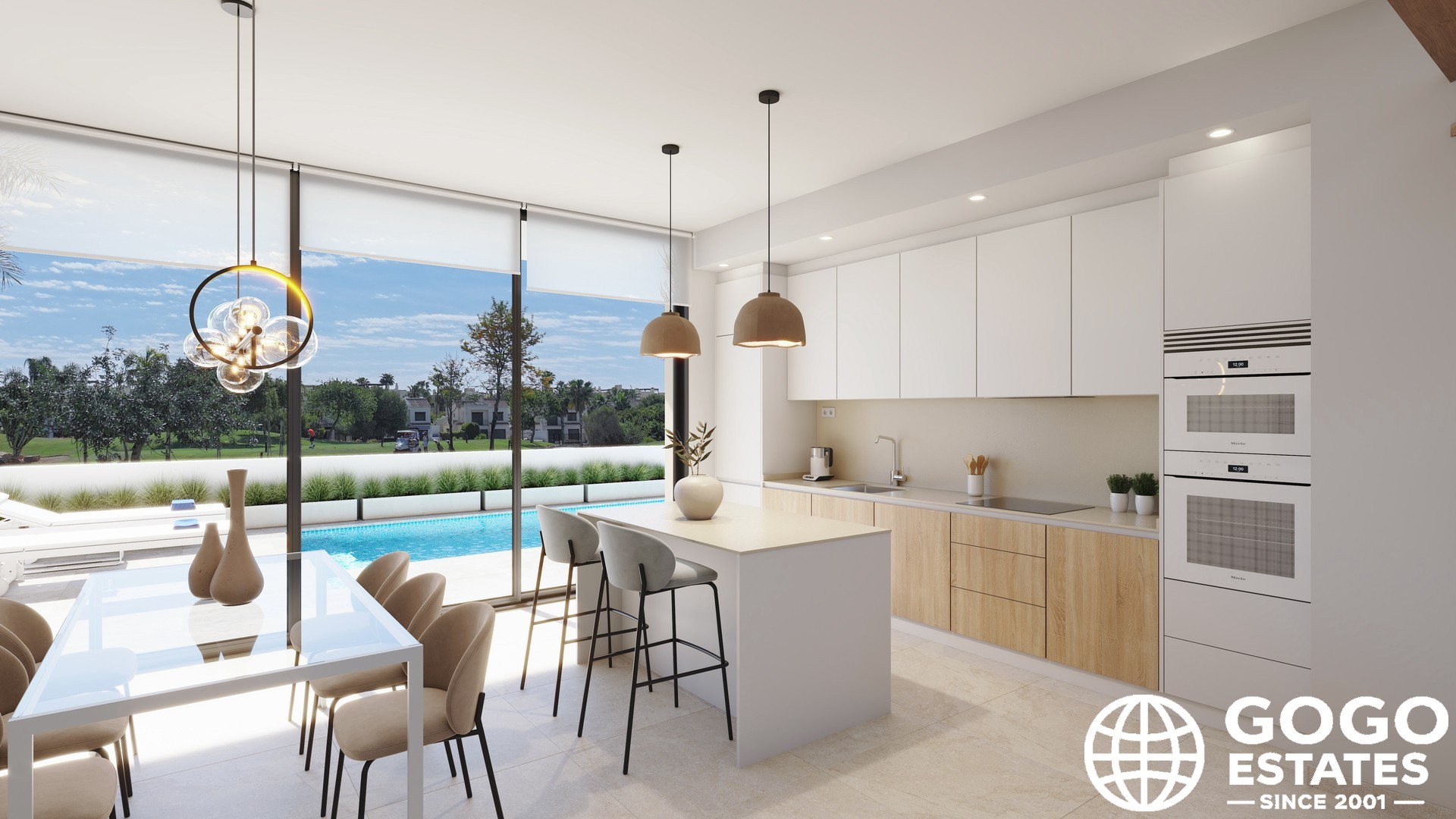 The exteriors of these townhouses are designed to maximize enjoyment of the Mediterranean climate. Each features a private garden, terrace, solarium, and a private pool, offering privacy and comfort for leisure and entertainment.