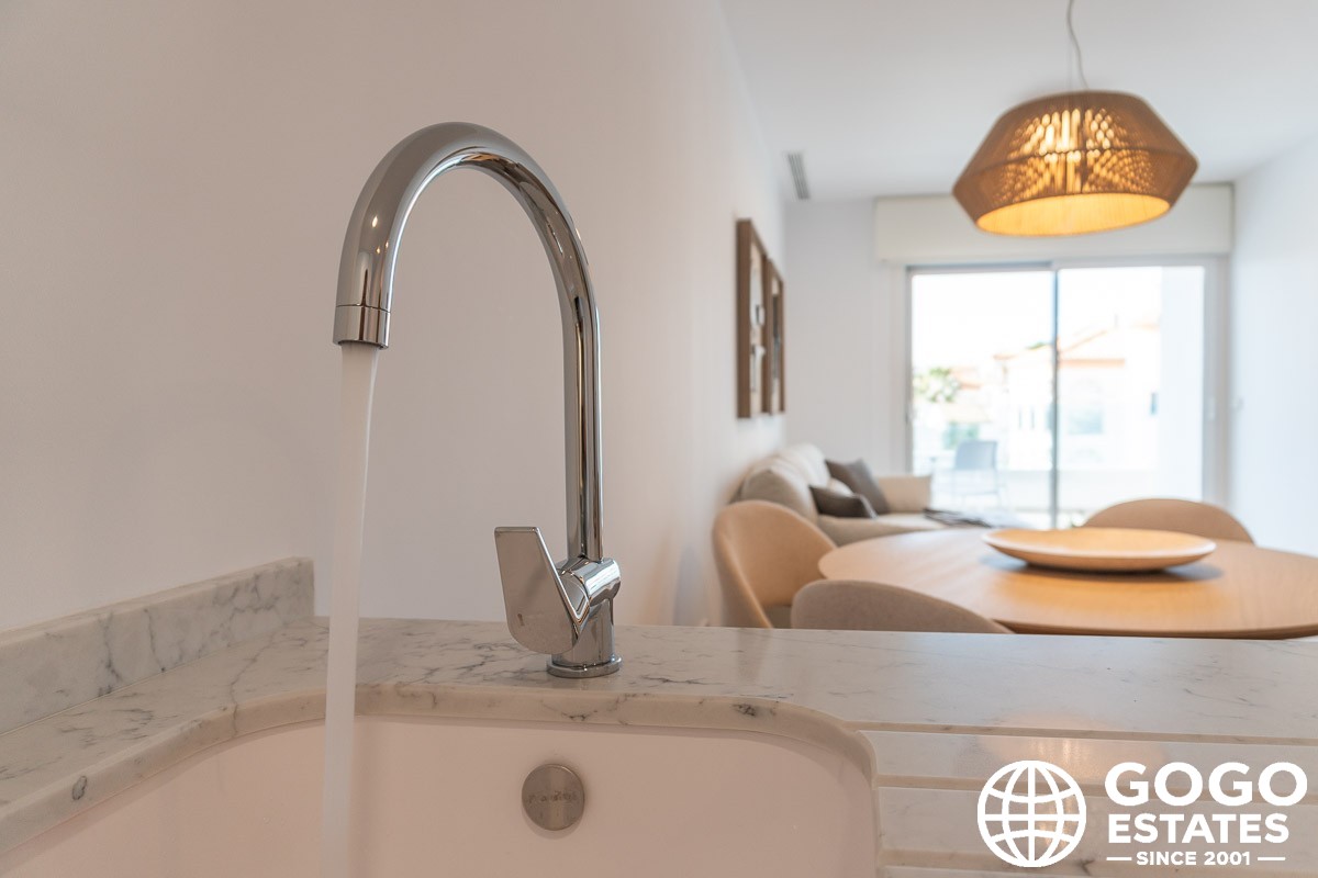 The exteriors are crafted to complement the Mediterranean lifestyle, featuring terraces for enjoying the sunny weather and views. Communal gardens add a touch of greenery, creating a tranquil environment.
