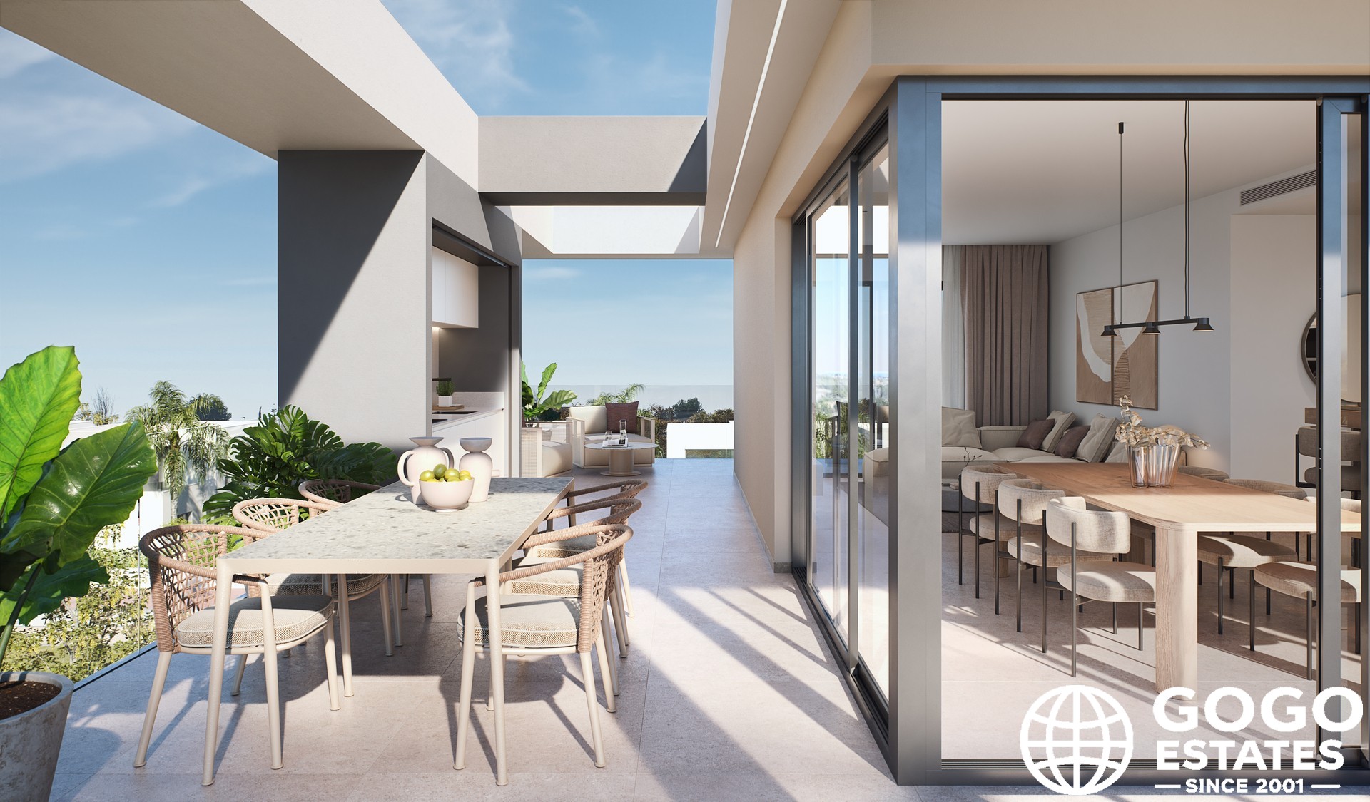 The penthouse boasts a private 77 m² terrace, perfect for enjoying the Mediterranean climate. Residents can also take advantage of the communal pool and well-maintained gardens, offering a tranquil setting for relaxation.